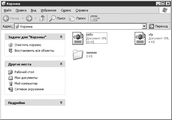 Для отмены удаления откройте Корзину, дважды щелкнув на ней кнопкой мыши. Она выглядит как обычная папка, но в ней доступны некоторые дополнительные настройки (рис. 11.14).