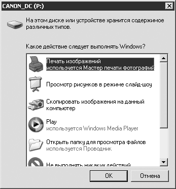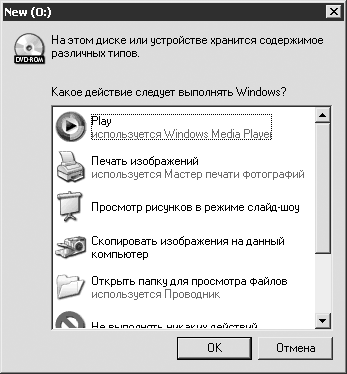 1. Play – воспроизведение содержимого сменного носителя в проигрывателе Windows Media Player (подробнее о нем читайте в гл. 22).