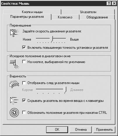 Дополнительные параметры указателя настраиваются на вкладке Параметры указателя (рис. 13.16).