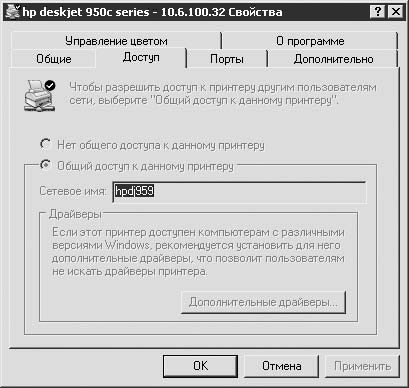 Рис. 15.9. Открытие сетевого доступа к принтеру