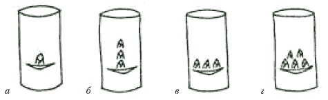 Типы расположения пазушных почек: а – одиночное; б – сериальное; в – коллатеральное; г – мутовчатое