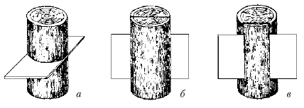 Разрезы осевых органов: а – поперечный; б – продольный радиальный; в – продольный тангентальный