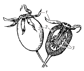 Цинародий шиповника: 1 – чашечка; 2 – гипантий; 3 – орешки