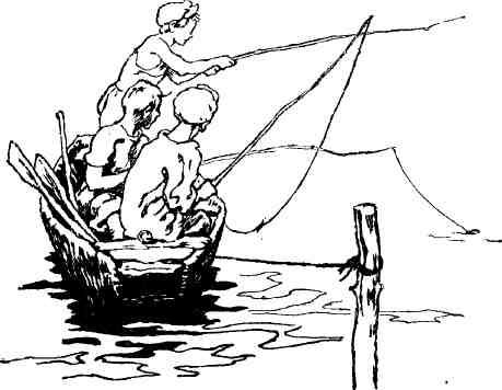 К колу подплыли тихо-тихо, зачалились и молча, осторожно, стараясь ничем не брякнуть, взялись за удочки. И вдруг точно дождь пошел — из воды вокруг лодки веером стали выскакивать крохотные рыбешки. В следующую минуту вода разом закипела — окуни с чмоканьем и бульканьем кидались за мальками; иногда на поверхности были видны их горбатые спины и растопорщенные колючие плавники. И вот уже Сережка вытащил одного окуня, за ним почти одновременно подсекли рыб Витька и Гусь.