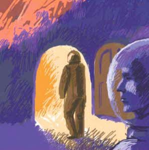 Под слоем марсианского грунта обнаружился вход в какое-то сооружение. Вход в него преграждали необычные объекты, издали похожие на кости мелких животных или крупного рогатого скота. Не придав этому значения, люди отбросили их в сторону и упёрлись лбом скафандра в дверь. Она была небольшой, видимо тот, кто построил строение, был коротышкой.