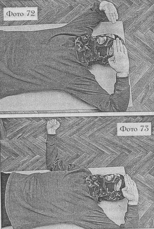 подреберья, захватите энергию в кулак (фото 74) и резко дерните локоть вниз, как бы вырывая что–то из области, расположенной над печенью и желчным пузырем (фото 75).