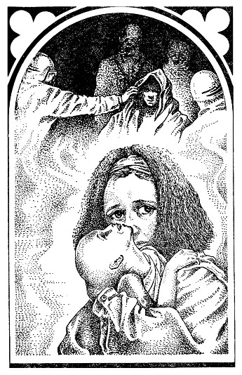 Он попытался вновь сосредоточить свой взгляд на лице этого существа, которое с помощью одних жестов говорило ему: «Я не нуждаюсь в твоем первом причастии, Человек, но я достойна передать тебе это причастие жизни». Теперь он знал, кто она, и слабо всхлипнул, когда не смог заставить свои глаза сосредоточиться на этих холодных, зеленых и беззаботных глазах существа, родившегося без греха.