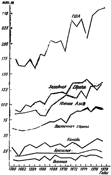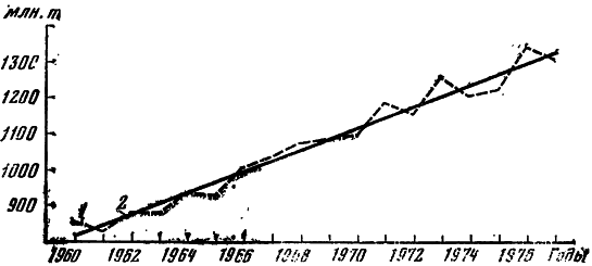 Рис. 14. Мировое производство зерна за 1960—1977 гг. (по данным ФАО).