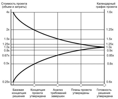 Как видно из рисунка, в начале проекта разброс может составлять от 0.25х до 4х, т.е. диапазон составляет 16х.