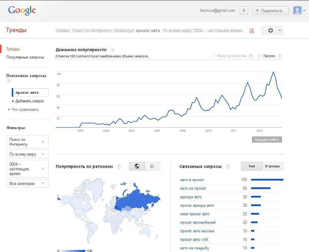 Google Trends и Google Correlate. Откройте Google Trends и введите запрос ”прокат авто”.