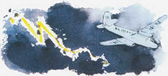 И тогда Кораблёв понял: видно, самолёт этот попал в грозовые облака и сбился с курса. И теперь только Кораблёв мог подсказать лётчику, где он находится, и помочь выйти к аэродрому.