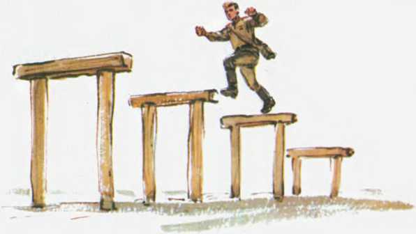 Тренировался на полосе препятствий.