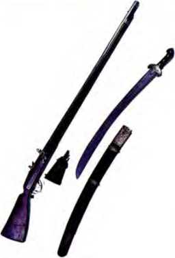 Фитильная пищаль, пороховница, сабля с ножнами — русское оружие, XVII в.