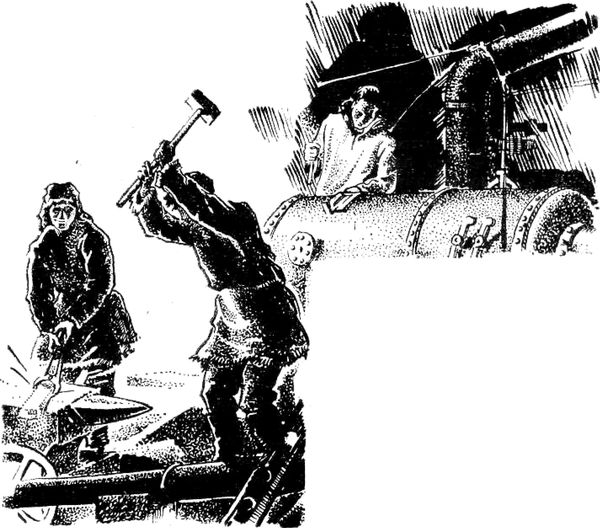 — Эй ты! Глупый озорник! Отдавай сейчас же заклепки!.. — заорал механик, подбегая к ним и яростно размахивая фонарем.
