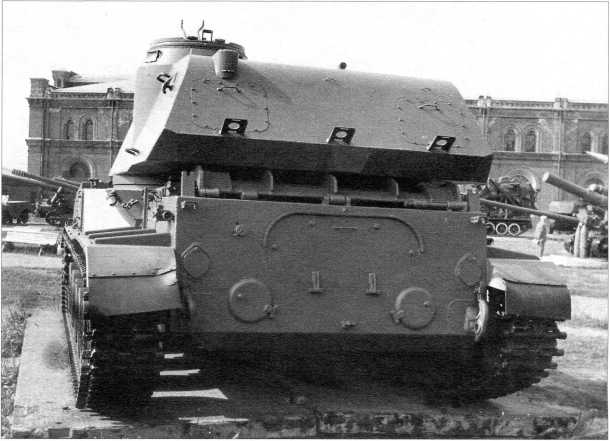 Это тоже 2СЗ, но более массовая серийная и более поздняя модель. Надгусеничные ниши корпуса удлинены в сторону кормы, появились третий ящик для ЗИПа и телескопический прицел, но еще сохранились защитные кожуха фар. Впрочем, на виде сбоку отличить эту машину от 2СЗМ довольно трудно.