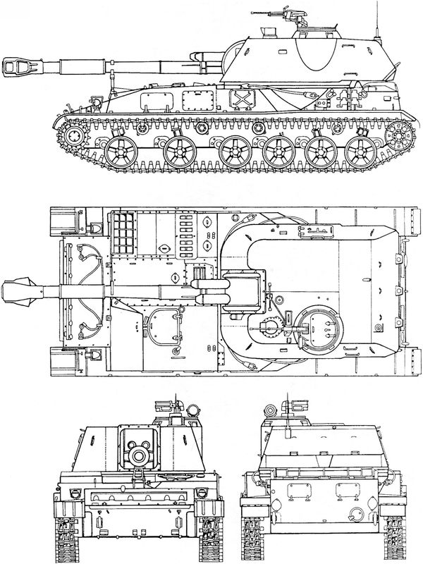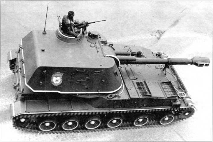 Самоходная гаубица 2СЗМ, вид сверху. Отлично видны антенный ввод на крыше башни и отсутствие люков в ее кормовом листе.