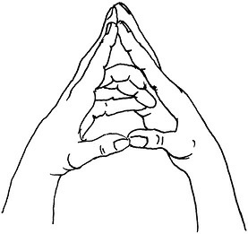 Методика выполнения. Мизинец, безымянный и указательный пальцы правой руки согнуты. И именно в таком положении их следует соединить с теми же пальцами левой руки. Средние пальцы также соединяются, но они выпрямлены. Большие – сомкнуты и соприкасаются боковыми поверхностями.