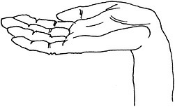 Методика выполнения. Рука согнута в локте и поднята ладонью вперед, от лица; пальцы вытянуты вверх. Как правило, выполняется правой рукой. Иногда – левой. Характерный жест Будды (рис. 8).