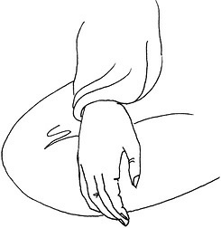Методика выполнения. Обе руки покоятся на коленях, правая – на левой. Все пальцы вытянуты. Ладони обращены вверх. Характерный жест Будды (рис. 13).