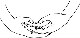 Методика выполнения. Обе руки располагаются напротив груди. Левая повернута ладонью внутрь, покрывает правую, ладонь которой обращена наружу. Указательный и большой пальцы каждой руки соединяются в круг (рис. 15).