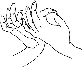 Методика выполнения. Все пальцы переплетены. Указательные же вытянуты вверх, прижаты друг к другу (рис. 17).