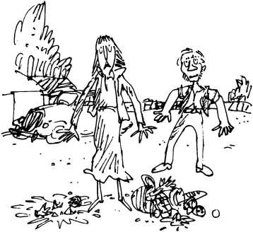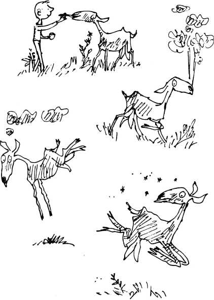 После чего эта древняя старушенция, вымахавшая с дом, галопом объехала на гигантском пони всю ферму, перелетая через деревья и сараи и крича: «Посторонись! Поберегись! С дороги, жалкие козявки, не то растопчу!» — и прочие подобные глупости.