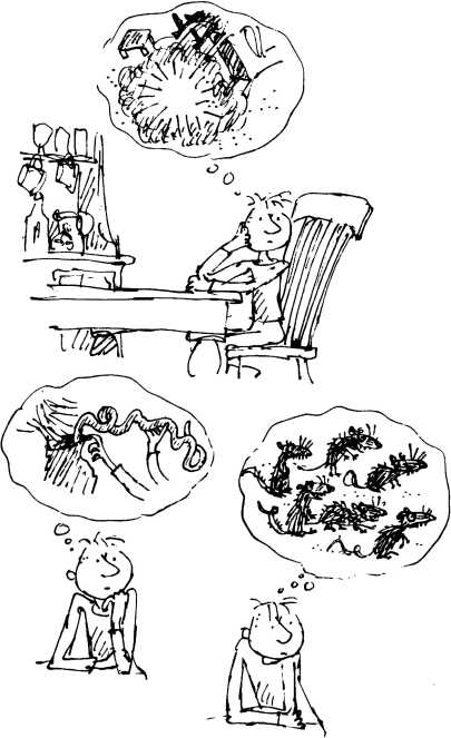 Пока Джордж сидел и размышлял над этой увлекательной задачей, взгляд его упал на пузырёк с бабушкиным коричневым лекарством. Наверняка жуткая дрянь. Четыре раза в день бабушке вливали в рот полную ложку этой гадости — и не похоже, чтобы от этого был хоть малейший прок. После приёма лекарства старая гиена оставалась такой же гнусной, какой была до того. Смысл-то лекарства в чём? В улучшениях. А если всё остаётся как было, значит, никакой пользы от лекарства нет.
