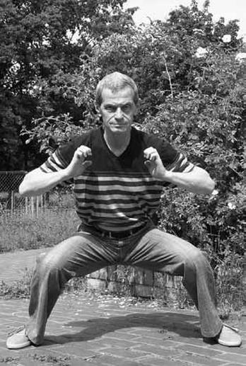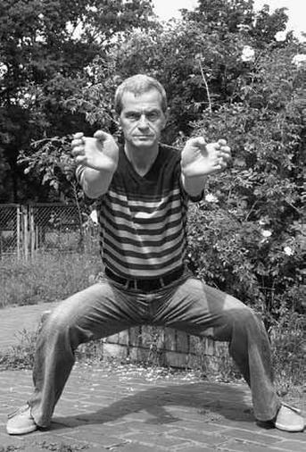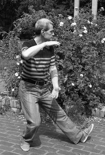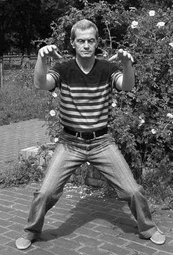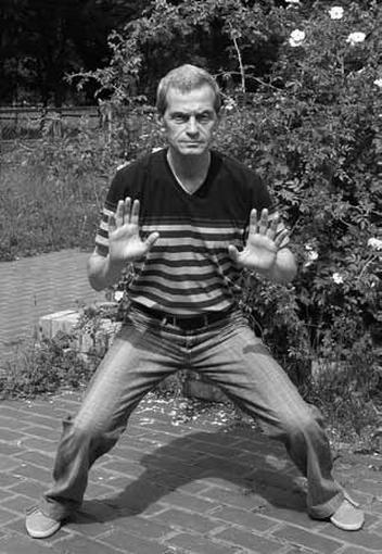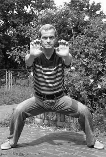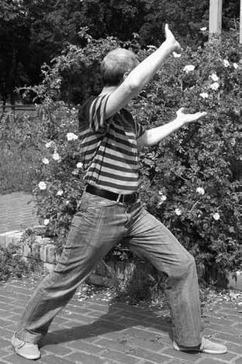 Завершив толчок, развернуть «лапы» наружу и затем вниз (получается, что левая ладонь вращается против, а правая – по часовой стрелке, если, разумеется, смотреть со стороны того, кто выполняет эту форму), после чего повернуть их тыльной частью вперед и вернуть «лапы» к плечам.