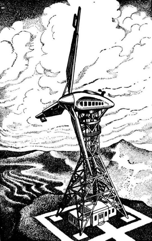 Рис. 19. Мощный советский ветродвигатель «ЦВЭИ-Д-50» на 1000 киловатт; проект.