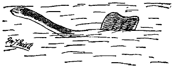 Я направил на него свой полевой бинокль и… увидел огромную голову и шею, поднимающиеся из воды впереди плавника. Шея не соединялась с плавником, а торчала из воды на расстоянии 18 или больше дюймов спереди от него. Казалось, что шея была толщиной с тело человека и на 7—8 футов возвышалась над водой».