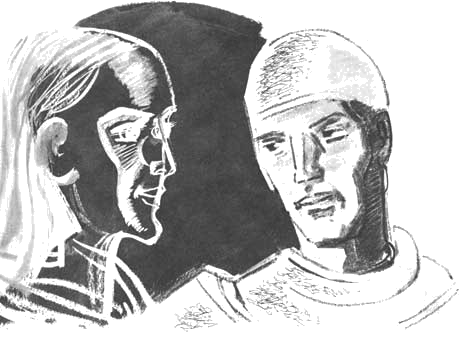 Как я вам рассказывал, призраки недолго задерживались около корабля. Появлялись — и сразу же уходили. Но однажды пришел странный призрак. Он долго бродил вокруг корабля, поднялся по трапу до закрытого люка, потом ушел в лес и скоро вернулся. Да, он вернулся; я запомнил его по голубой накидке. Он положил около трапа плоды — круглые, похожие на наши апельсины, — а сам отошел и сел в тени.