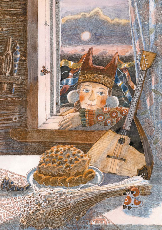 Возле старшего сына, Вани, – свистулька. Баран с красными рогами. Перед Петей – костяной рожок. У младшенького Аристарха на коленях балалайка.