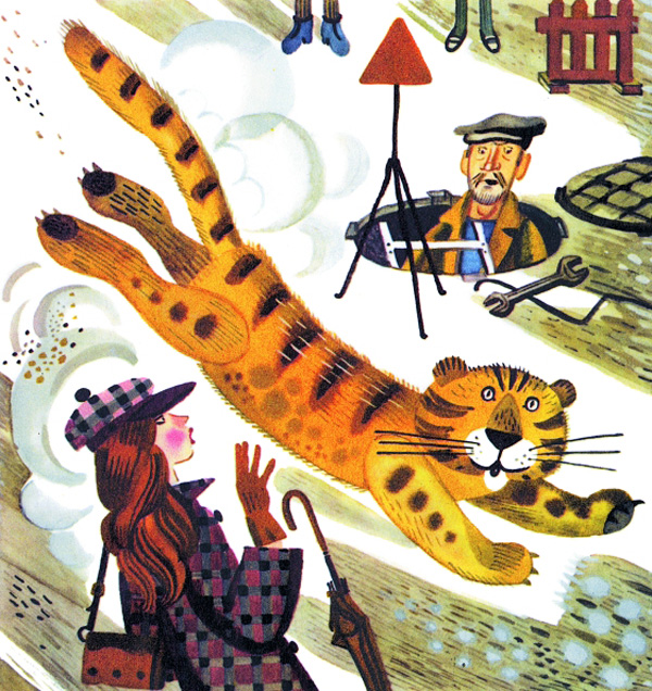 А плюшевый тигр в ужасе мчался посреди улицы, прижав к голове круглые уши.