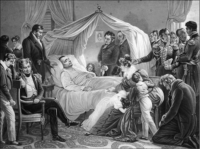 Смерть Наполеона на острове Св. Елены. Литография XIX в.