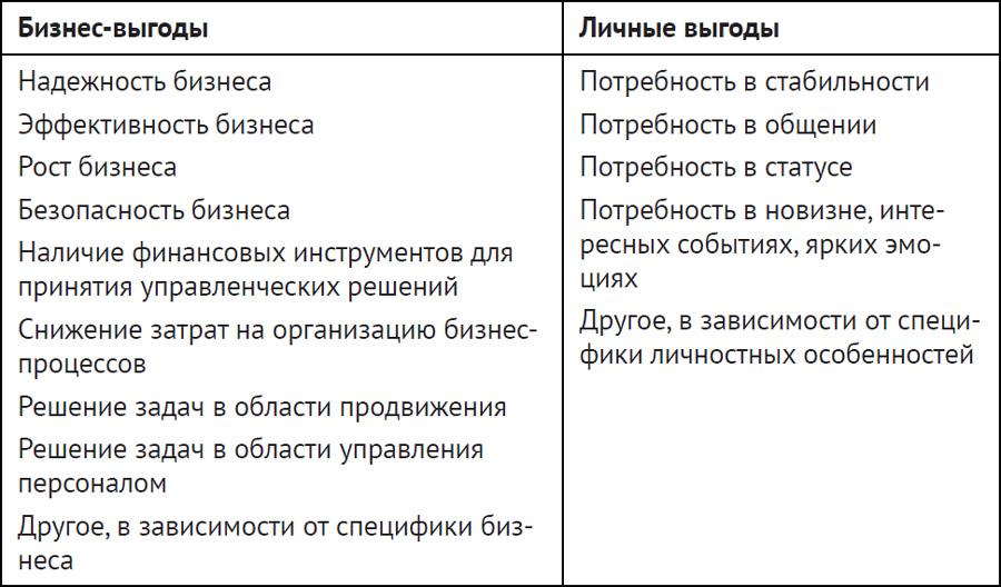 Целевой клиент банка «Урал ФД» – руководитель малого и среднего бизнеса – обладает набором выгод двух типов (табл. 3.2).