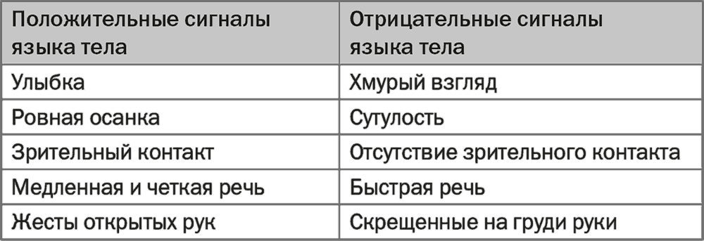 Язык тела может нести в себе положительные и отрицательные сигналы. Вот несколько примеров: