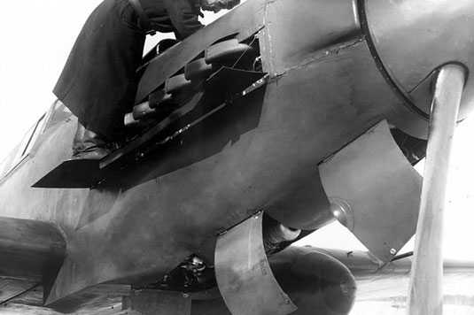 Для повышения эксплуатационных возможностей самолета вместо съемных патронных и снарядных ящиков в крыле монтировались специальные встроенные отсеки.