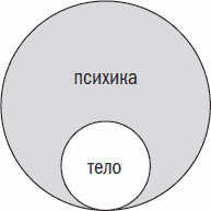 Поэтому для нашего современника естественным, а исторически свидетельствующим об усложнении психики человека в целом представляется следующий этап: дихотомия, разделение целостного человека на тело и психику, схематически изображается как две окружности: внутренняя – тело, наружная – психика (схема 2).