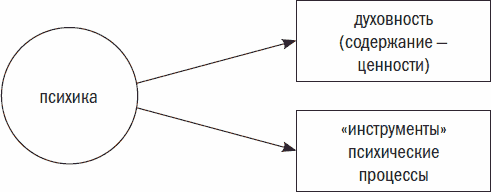 Преодолеть эти смешения позволяет трихотомическая концепция. Новая, третья структура возникает в ходе дифференциации психики – разделения ее на «инструменты» и «содержание», психические процессы и духовные ценности, на душу и дух (схемы 4 и 5).