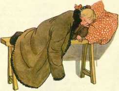 Дедушка отвёл Дуняшу в кухню, уложил её на лавку и прикрыл своим тулупом.