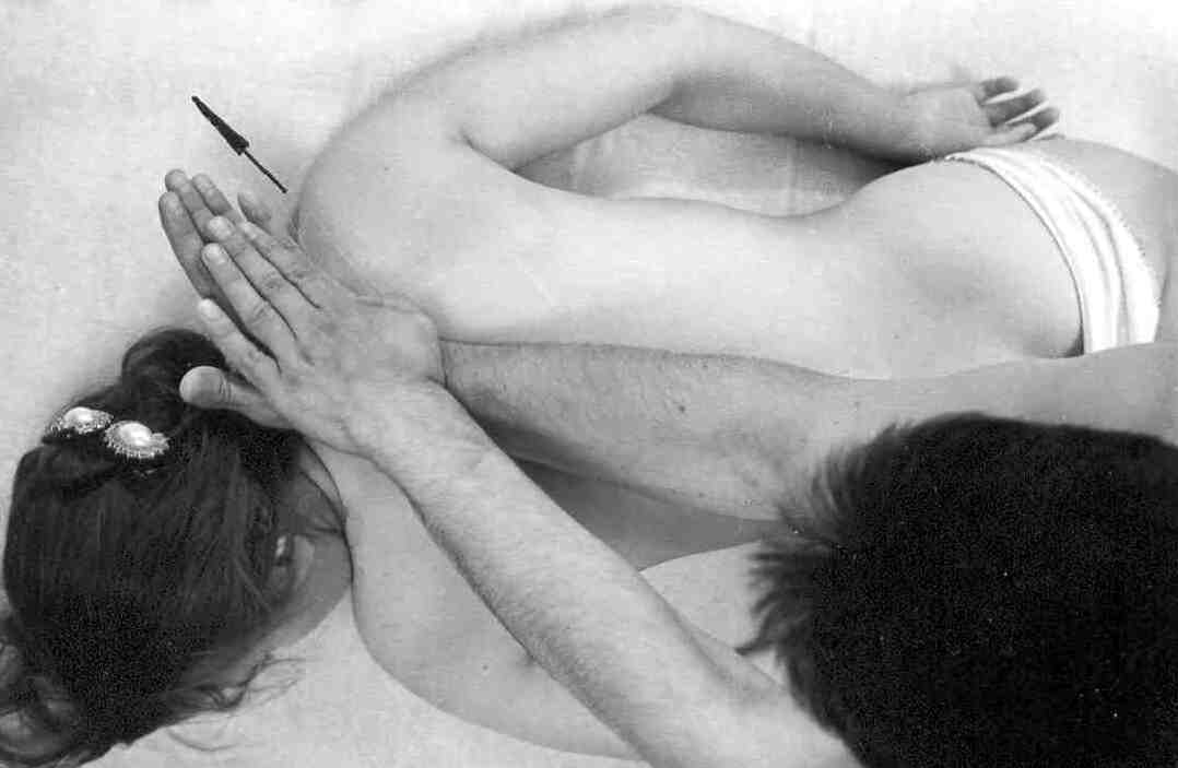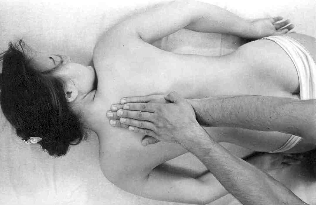 После поглаживания начинайте более глубокое и сильное воздействие на кожу, используя передвижение, смещение и растяжение тканей тела. Руки при этом не скользят по коже, а смещают ее.