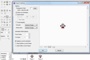 Откроем Import (Ctrl– O) – импортировать изображение или набор анимаций, укажем путь, а также дополнительные опции, как представлено на рисунке.