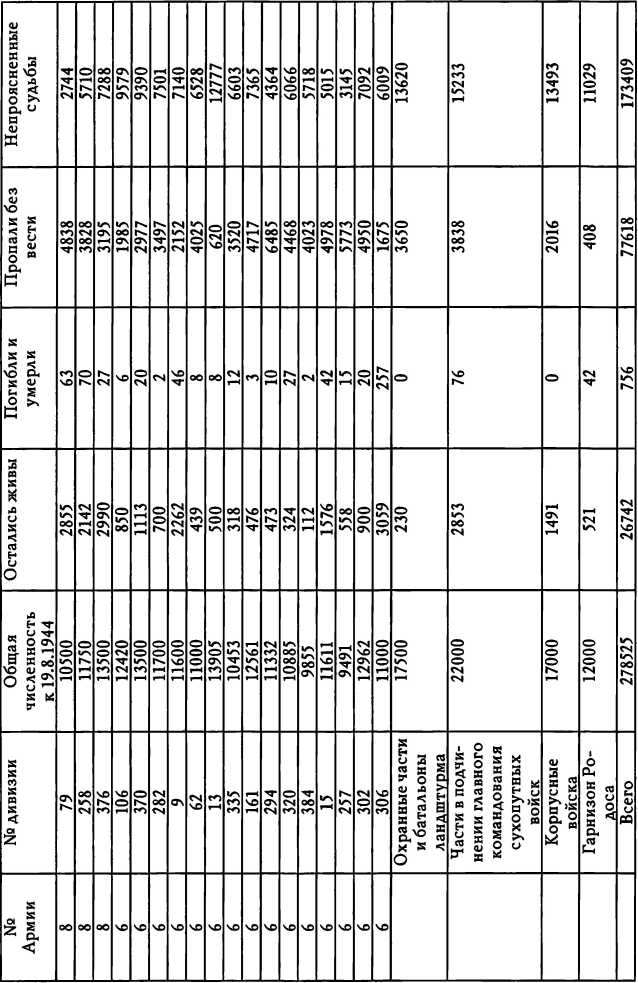 Потери уничтоженных немецких войск группы армий «Южная Украина» в августе — сентябре 1944 года.