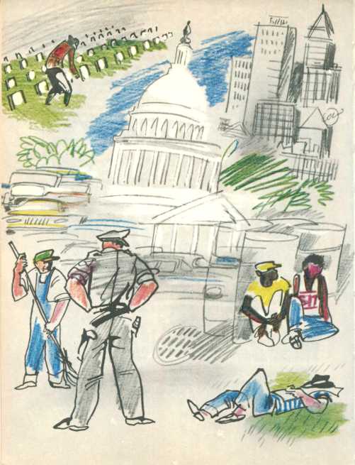 И когда я вышел наконец к парку Конституции, к мемориалу Линкольна, я вовсе не ощущал усталости. По-прежнему светило солнце, и небо было все таким же ясным, голубым, оно отражалось в торжественной водной глади, идеально ровным прямоугольником протянувшейся перед мемориалом Линкольна. Среди аккуратно подстриженных газонов двое ярко одетых ребятишек с самозабвенной веселостью играли в мяч. Тут же на траве, подстелив газету, спал старый негр. И даже вид этого, по всей вероятности бездомного, человека не смутил, не нарушил того ощущения безмятежности и покоя, которое владело мной. Казалось, и этому старому негру хорошо спится сейчас здесь, под лучами осеннего солнца…