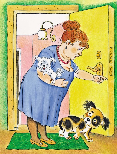 Время шло, и щенок рос. Он уже не был таким симпатичным и таким неуклюжим, как раньше. Теперь хозяйка, показывая его гостям, не говорила: «Ах, какая прелесть!» – а, наоборот, говорила: «Моя собака ужасно некрасива! Но не могу ж я её выгнать? Ведь у меня такое доброе сердце! Оно в пять минут разобьётся от горя!»