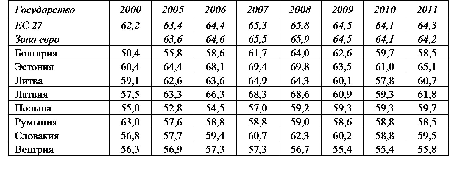 УРОВЕНЬ ЗАНЯТОСТИa) В СТРАНАХ ВОСТОЧНОГО ПОГРАНИЧЬЯ ЕС, в %