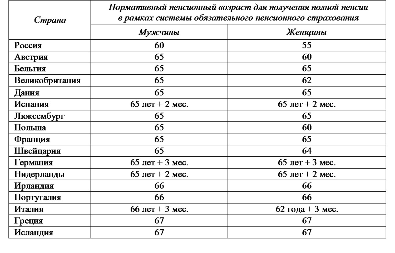 НОРМАТИВНЫЙ ПЕНСИОННЫЙ ВОЗРАСТ НАСЕЛЕНИЯ В РОССИИ И В СТРАНАХ ОЭСР