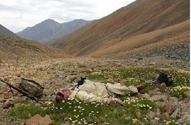 А однажды, в маршруте, на подходе к водоразделу, силы вдруг оставили меня. На ногах-то я еще стоял, но они стали как ватные и я не мог сдвинуться с места. Хотелось лечь и отдохнуть… Но до верха, где уже был Найденков, было всего с сотню метров… А я сдвинуться не могу… Сначала напарник снял с меня радиометр. Я прошел несколько метров и встал… Ну, не идут ноги и все тут… И тогда напарник взял меня за руку и повел. Отпустит руку, я останавливаюсь… На водоразделе я, наконец-то, свалился на землю, чтобы отдохнуть.