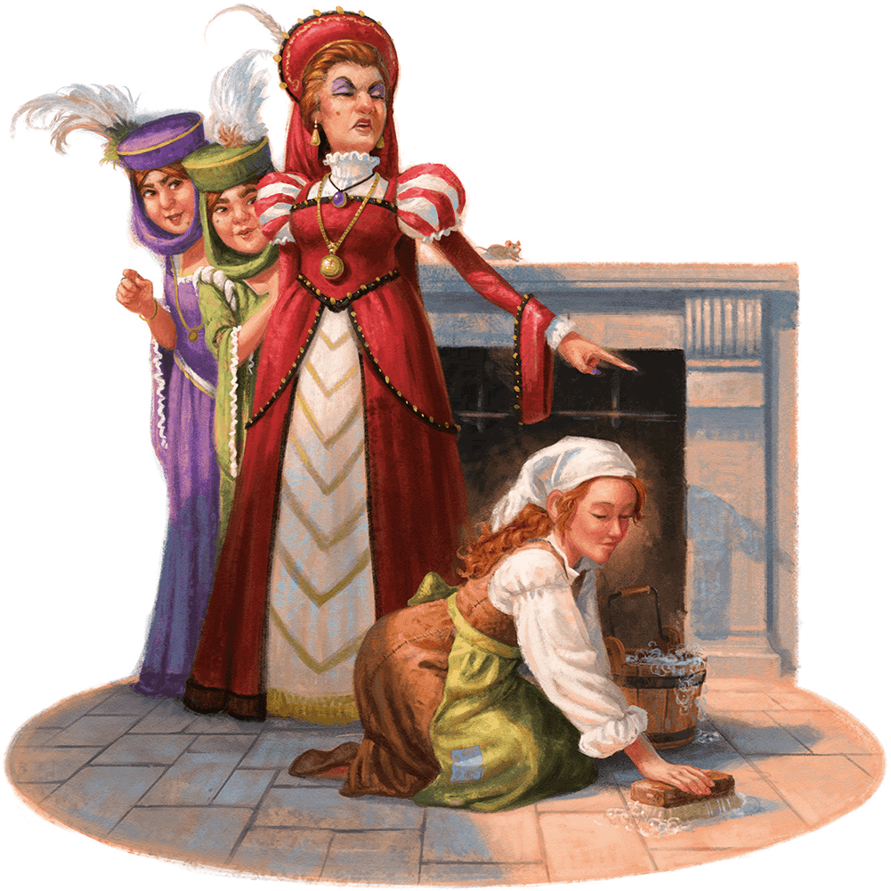 С тех пор относиться к Золушке стали не как к сестре или дочери, а как к самой настоящей служанке. Мачеха и сводные сёстры заставляли её работать по дому до седьмого пота, исполнять все их прихоти и во всём им угождать.