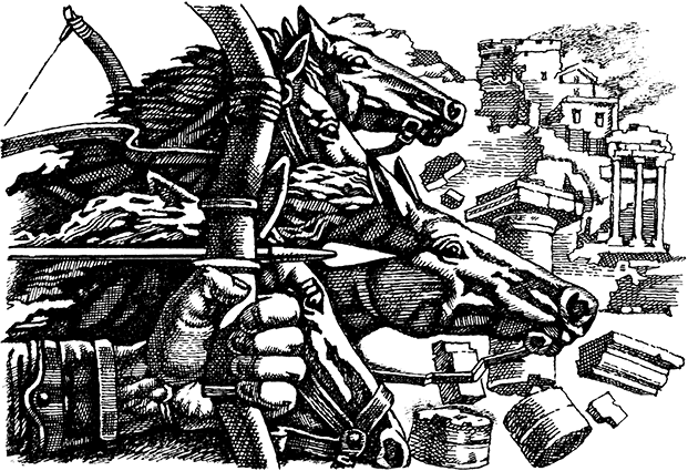 В тот день никто не мог победить! И все же к вечеру Аттила отступил и укрылся в своем стане, окруженном кибитками. Оттуда гунны, как из крепости, пускали сотни стрел в тех, кто осмеливался приблизиться, поэтому взять их лагерь штурмом было невозможно. А ночью гунны ушли, и Аэций не рискнул их преследовать, потому что на это не было сил…